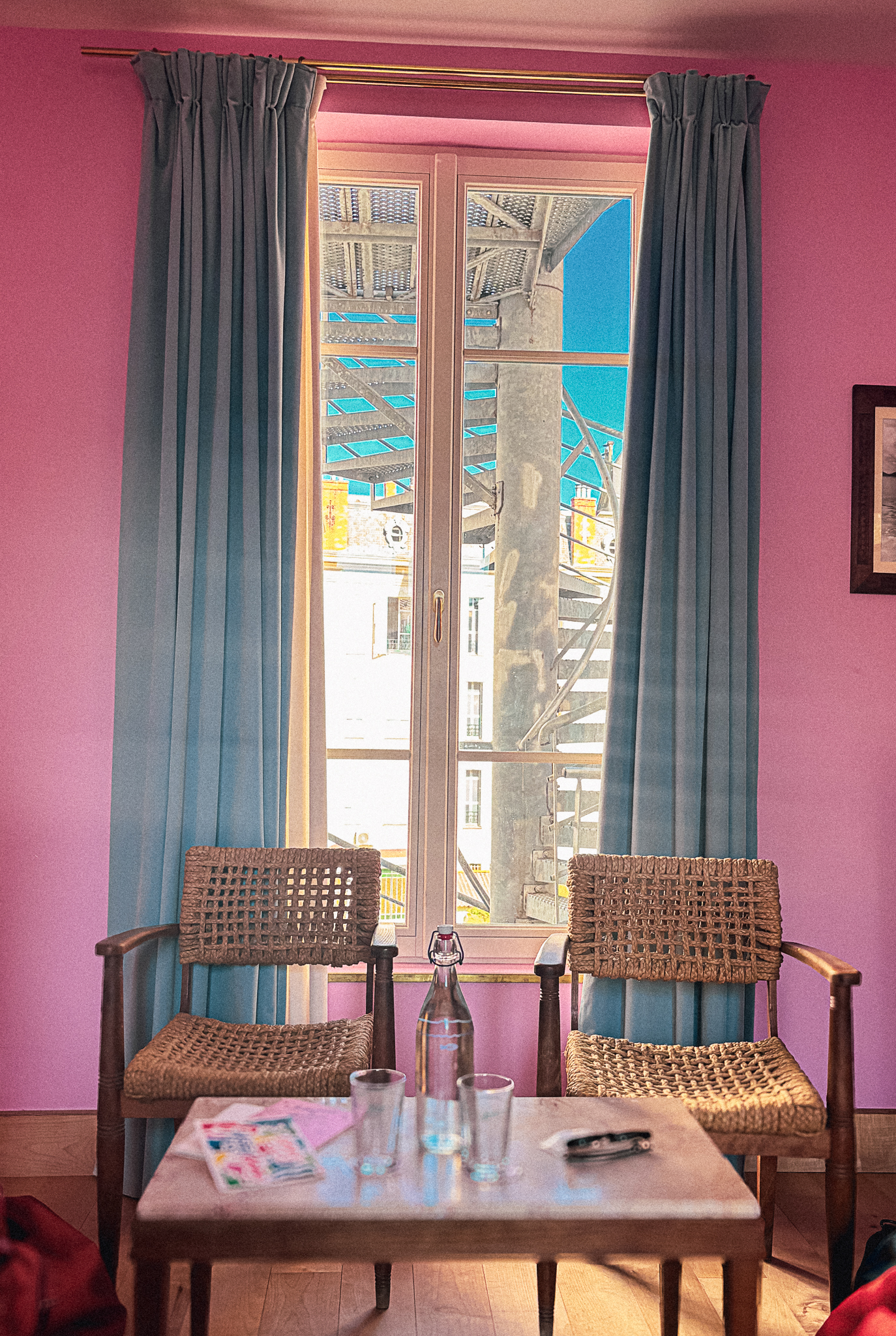 Il y a des endroits où je me sens bien immédiatement, sans avoir besoin de chercher une explication. Je rentre, je regarde autour de moi, et tout paraît évident. L’Hôtel Amour fait partie de ces lieux-là. Ce n’est pas minimaliste, ce n’est pas épuré, et ce n’est certainement pas silencieux visuellement. Il y a de la couleur, des livres, des tableaux, des objets un peu partout, et pourtant l’ensemble fonctionne parfaitement.