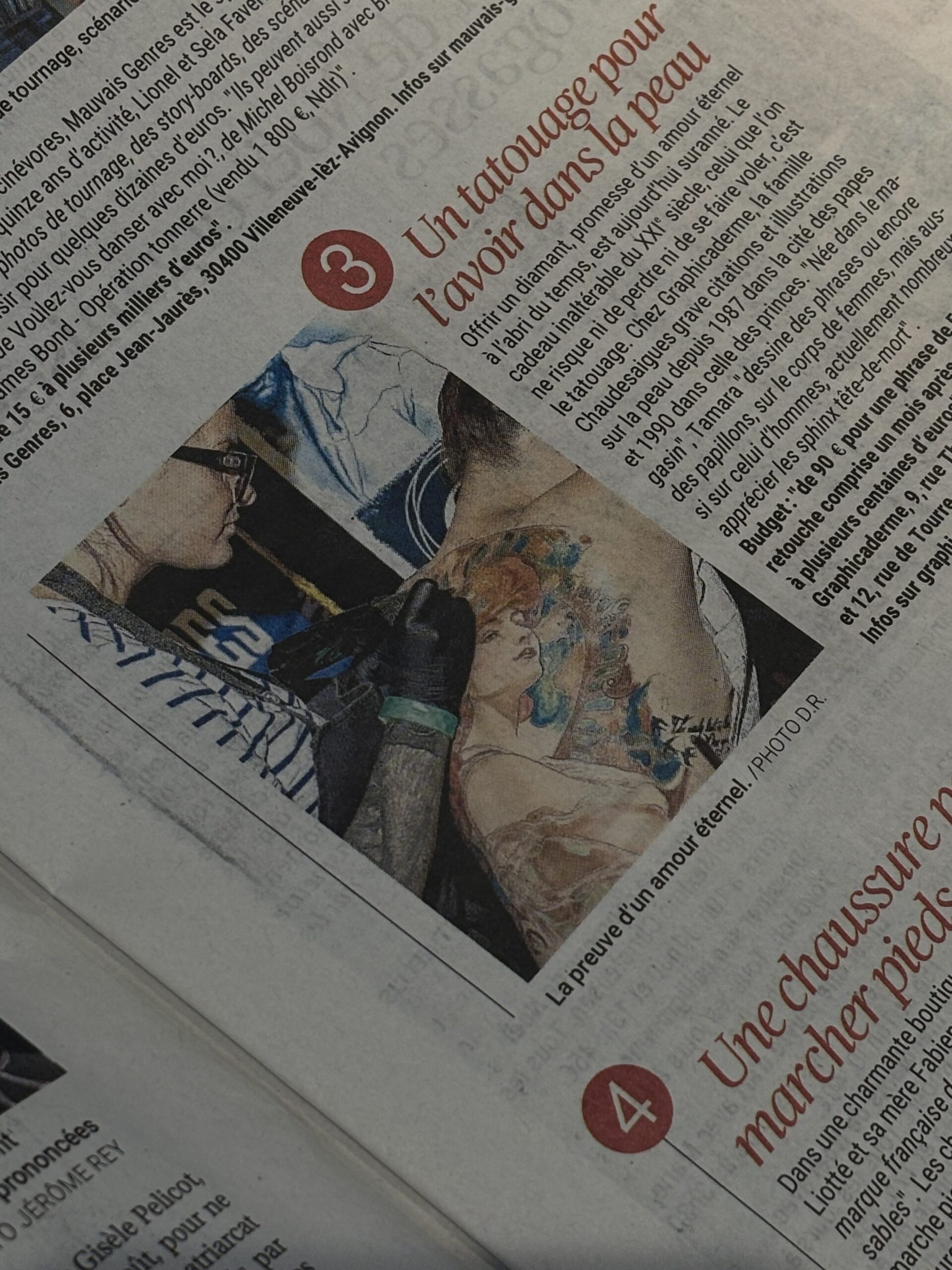 La parution est intervenue une semaine après ce premier échange, dans l’édition Vaucluse du journal. Il ne s’agissait ni d’un portrait, ni d’une interview, mais d’une sélection éditoriale mettant en avant des propositions locales, dont ce projet de tatouage.