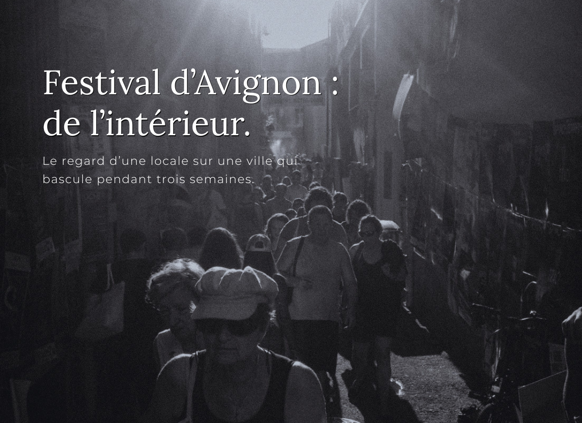 J'ai grandi à Avignon, donc le Festival fait vraiment partie de mon quotidien depuis toujours. Ce n'est pas quelque chose que je vis comme une touriste ou même comme une spectatrice, c'est juste ce qui arrive chaque juillet, et qui change complètement l'atmosphère de la ville.