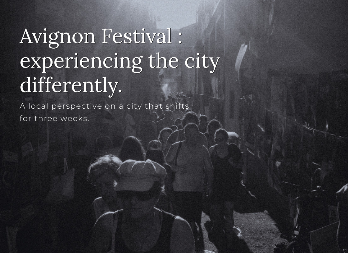 I grew up in Avignon, so the Festival has genuinely been part of my daily life forever. It's not something I experience as a tourist or even as a spectator, it's just what happens every July, and what completely changes the atmosphere of the city.