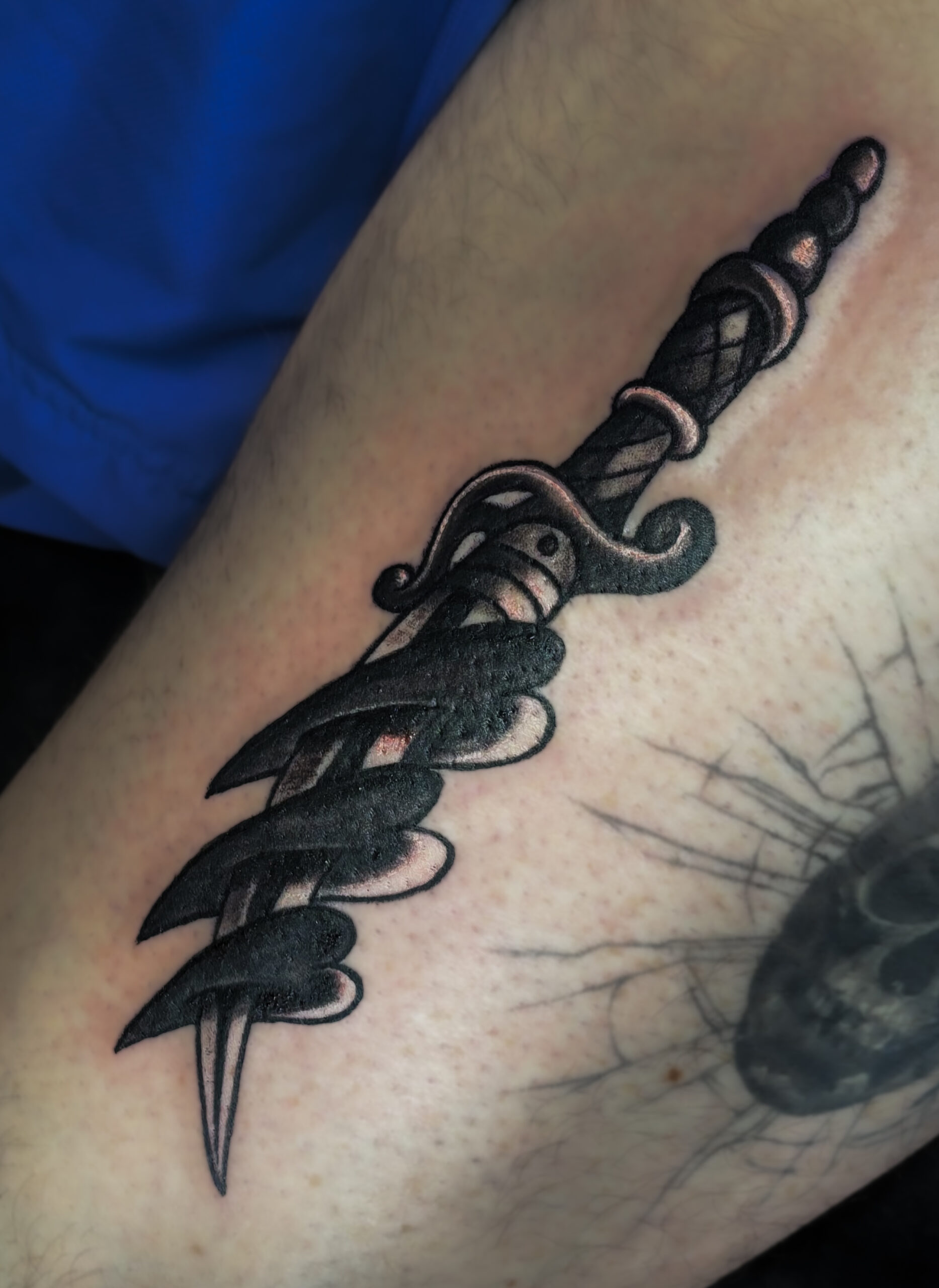 Tatouage en cours, travail du tracé et de la composition, inspiration art nouveau.