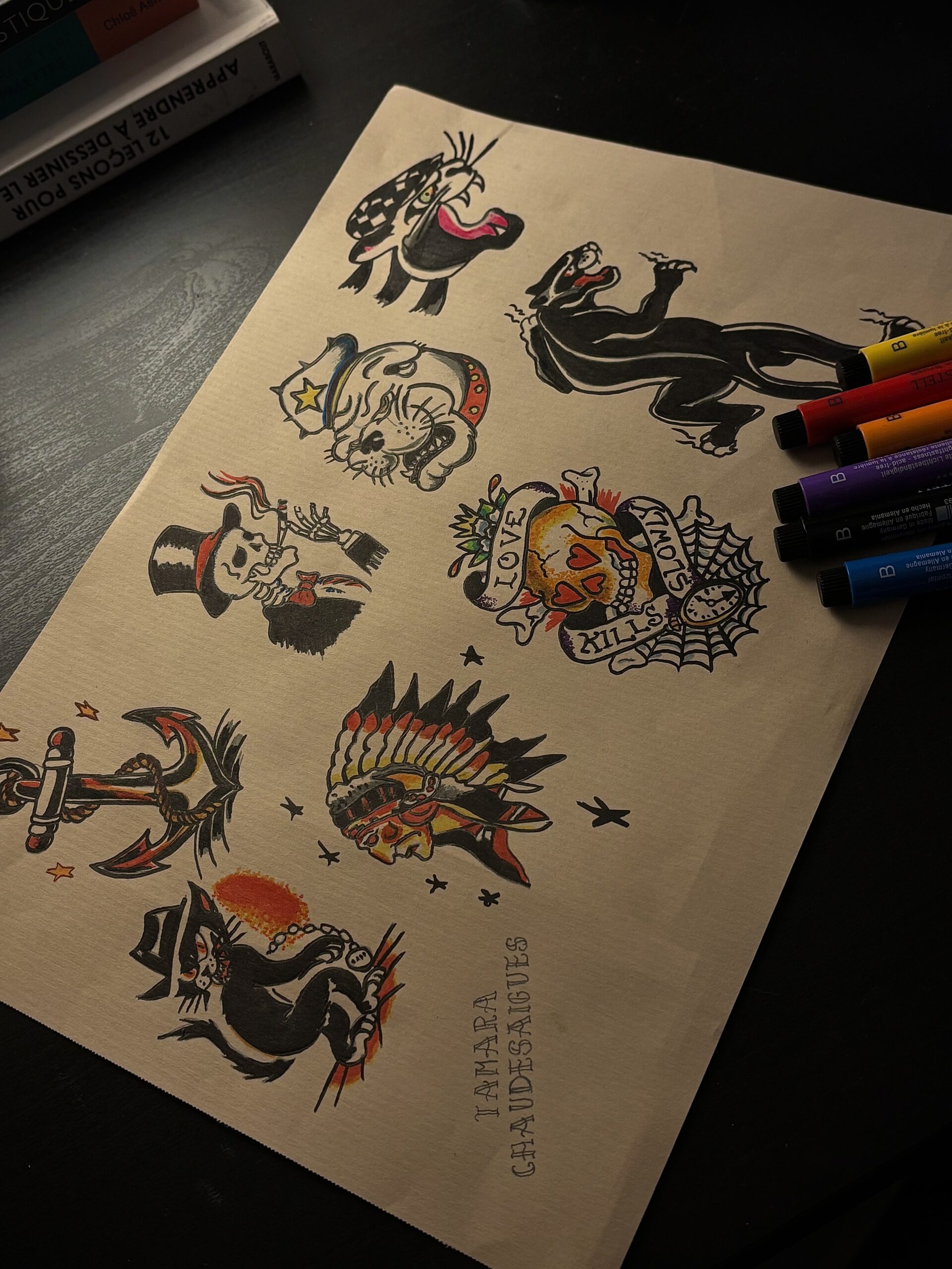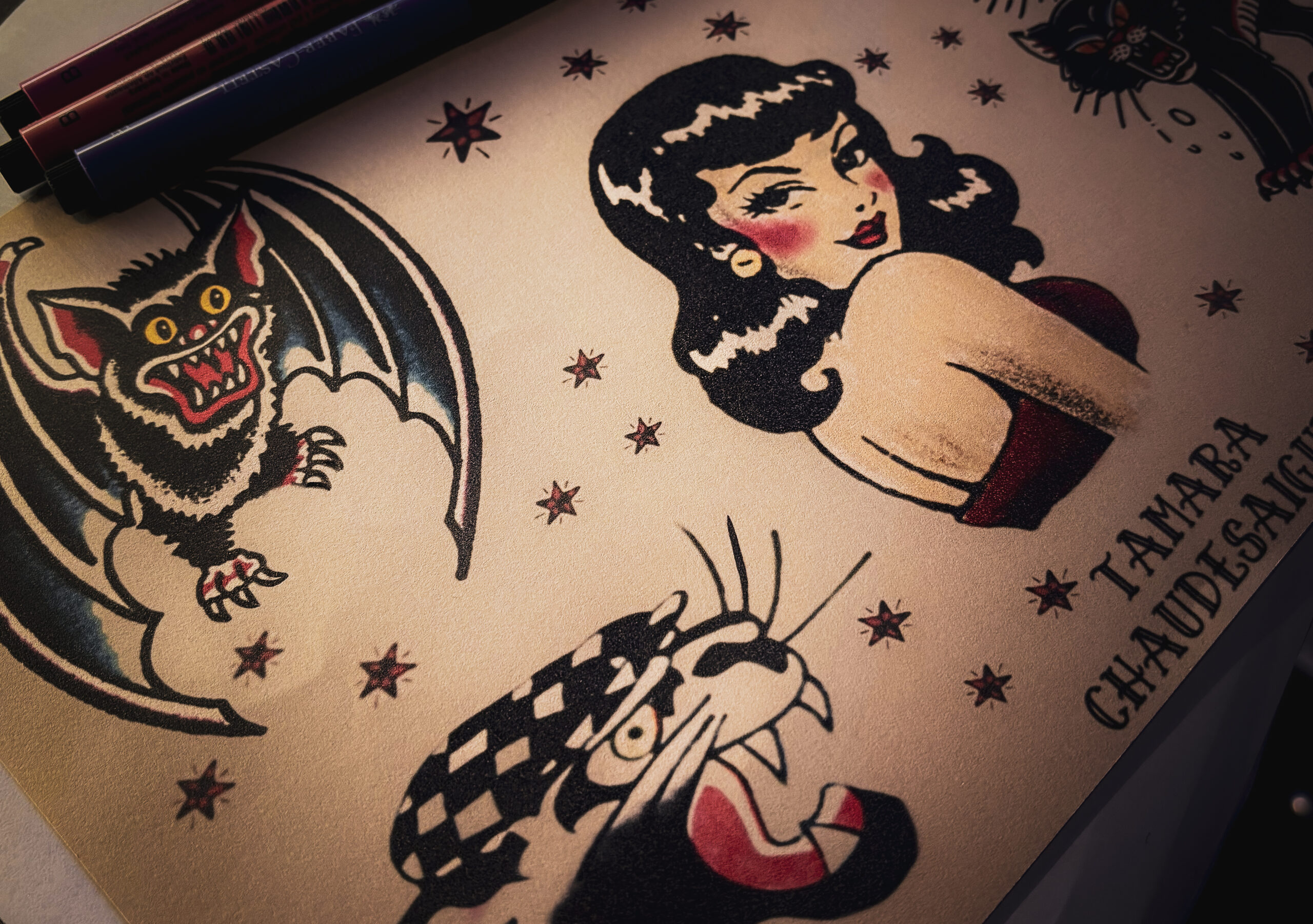 Planche flash old school – dessins traditionnels par Tamara Chaudesaigues