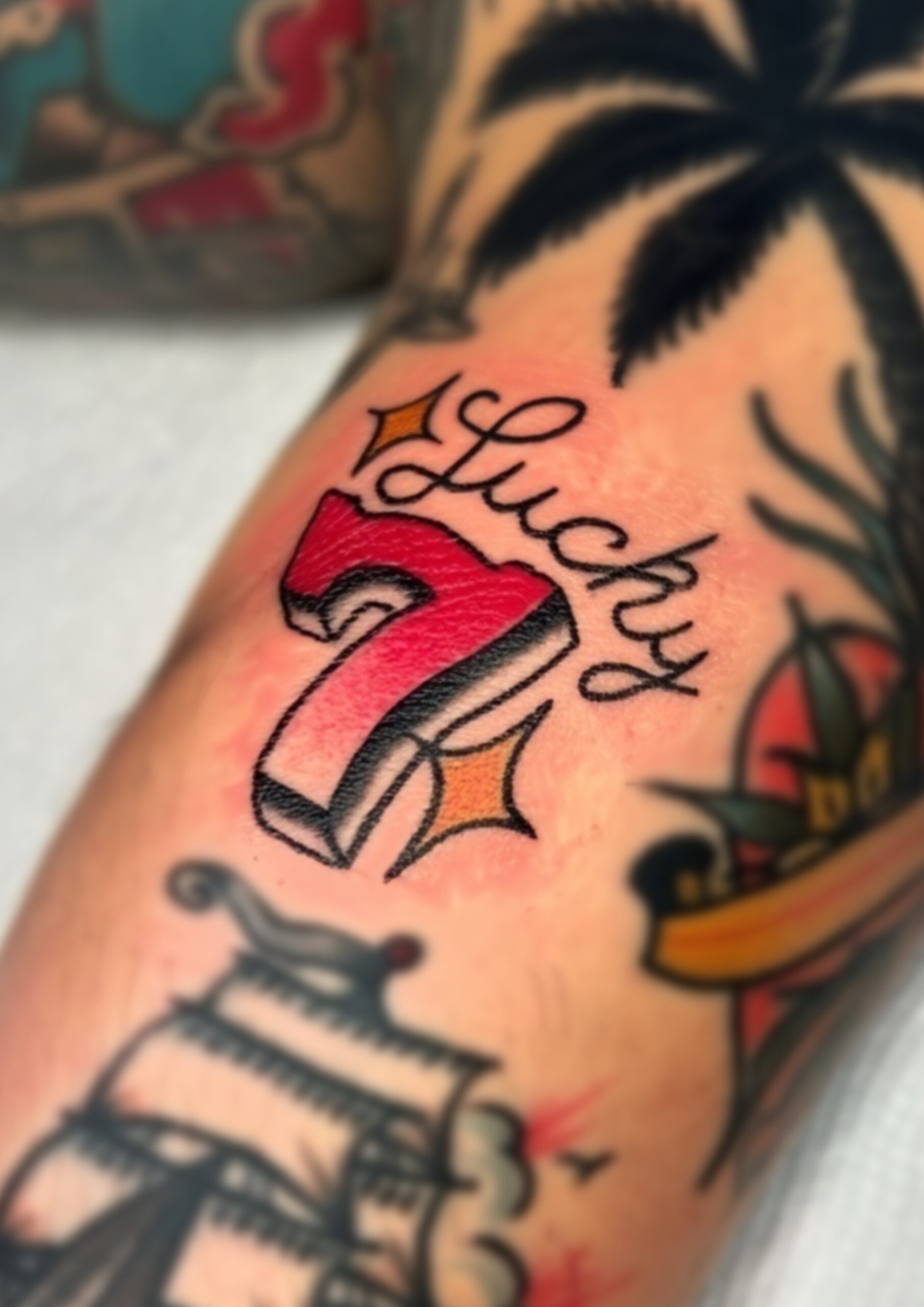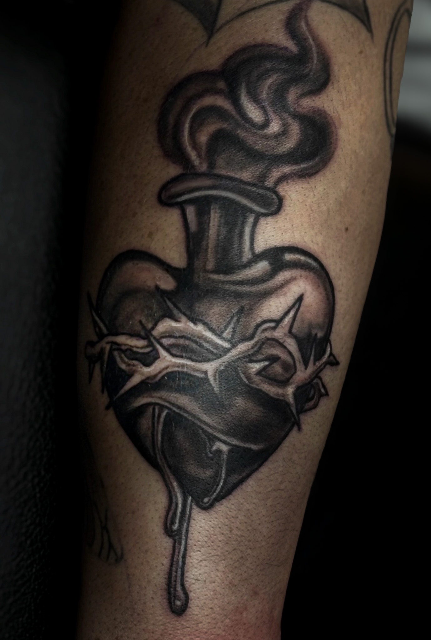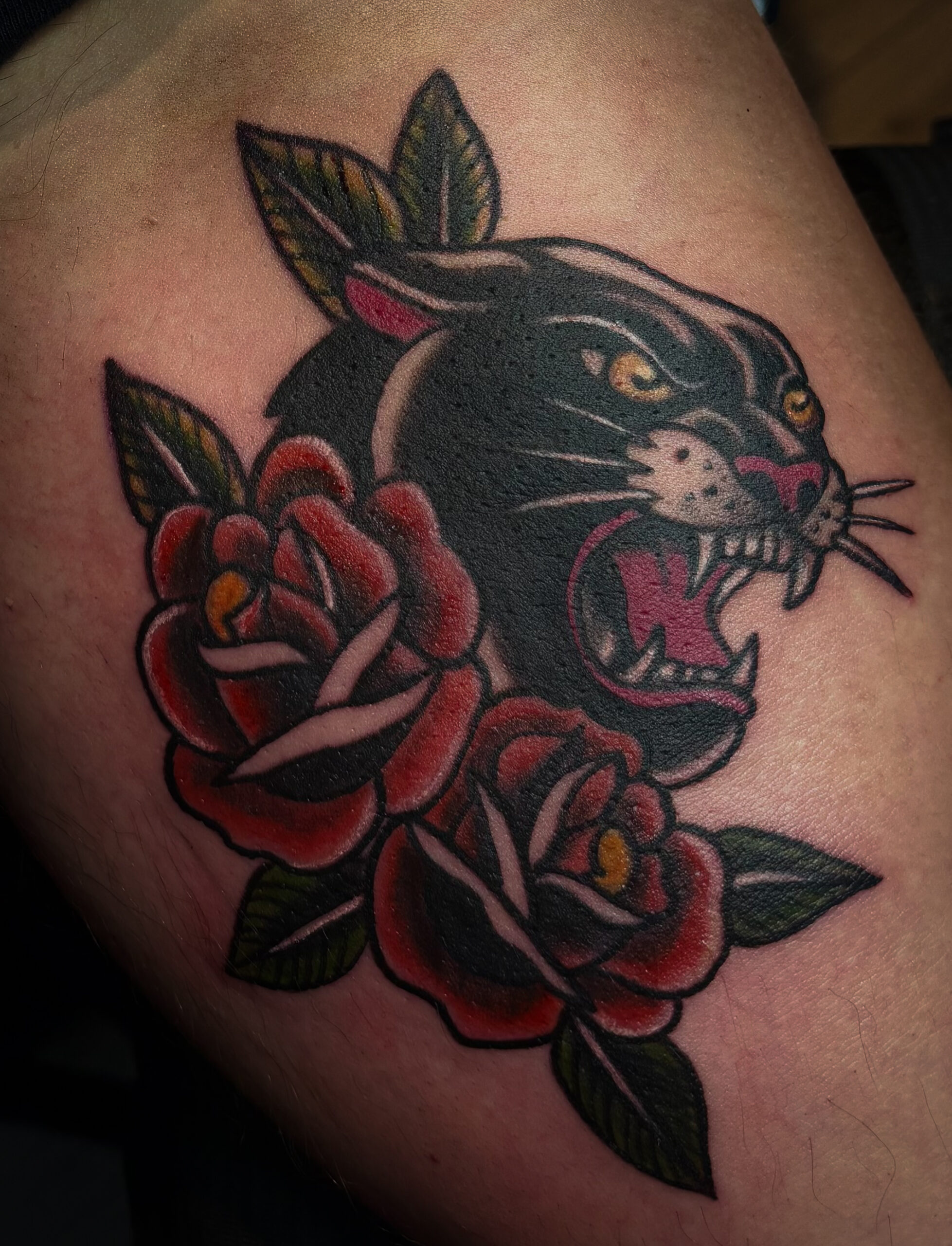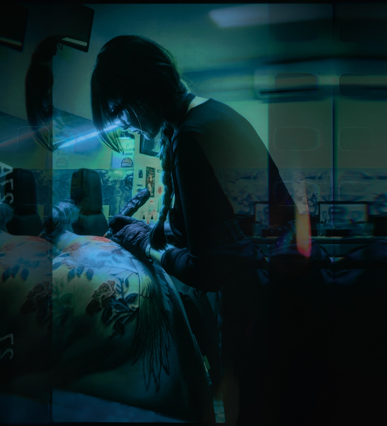 Bras inspiré de Tamara de Lempicka, en cours de tatouage.