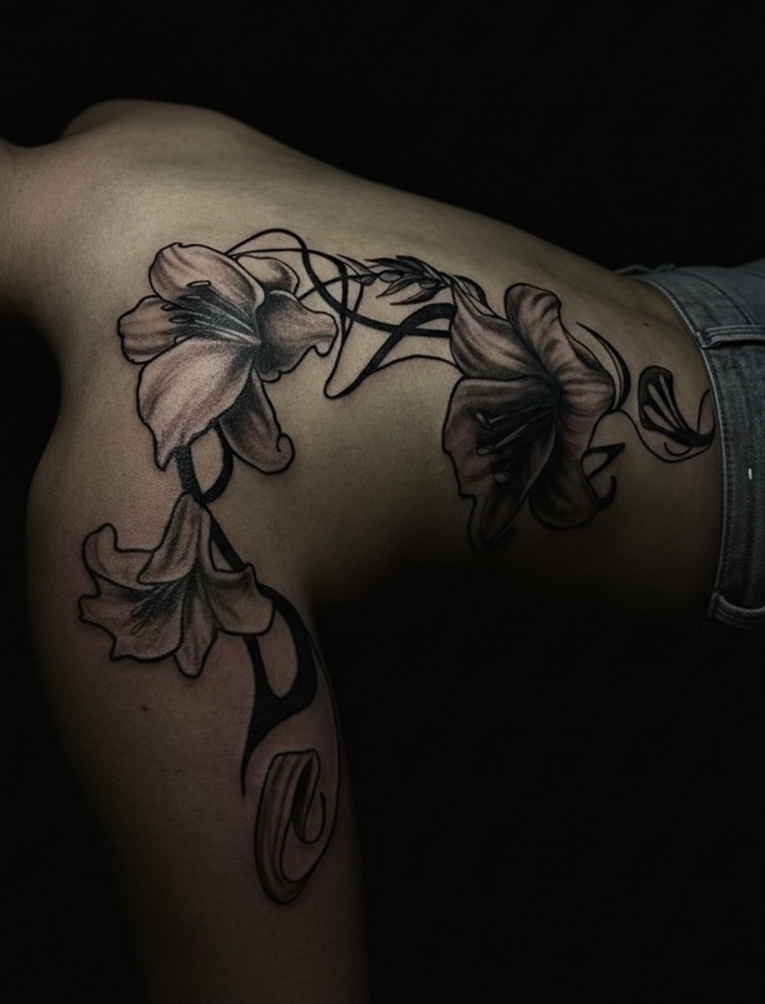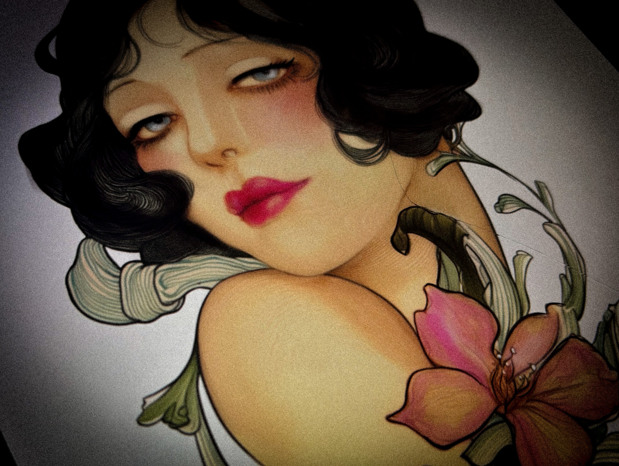 Tatouage féminin art nouveau — inspiration Alphonse Mucha | Tamara Chaudesaigues