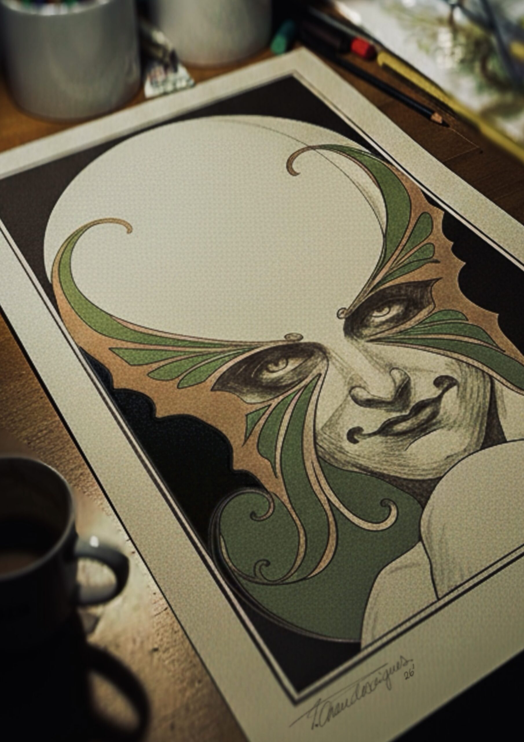 Portrait féminin — en cours de réalisation, inspiration art déco